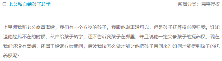 上星期我和老公商量离婚,我们有一个6岁的孩子。我跟他说离婚可以,但是孩子抚养权必须归我。谁知道他趁我不在的时候,私自给孩子转学,还不告诉我孩子在哪里,并且说他一定会争孩子的抚养权。现在我们还没有离婚,还属于婚姻存续期间,后续我该怎么做才能让他把孩子带回来?如何才能得到孩子的抚养权呢?