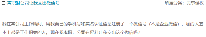 我在某公司工作期间,用我自己的手机号和实名认证信息注册了一个微信号(不是企业微信),加的人基本上都是工作相关的人。现在我离职,公司有权利让我交出这个微信吗?